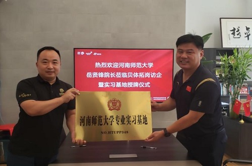 为推动体育学院学生校外实习和社会实践活动的开展,实现学生更高质量、更充分就业创业,建立人才培养和人才资源长效合作机制。7月21日,体育学院院长岳贤锋赴郑州贝体体育科技有限公司进行访企拓岗活动,并进行了与实习就业基地的签约与授牌。