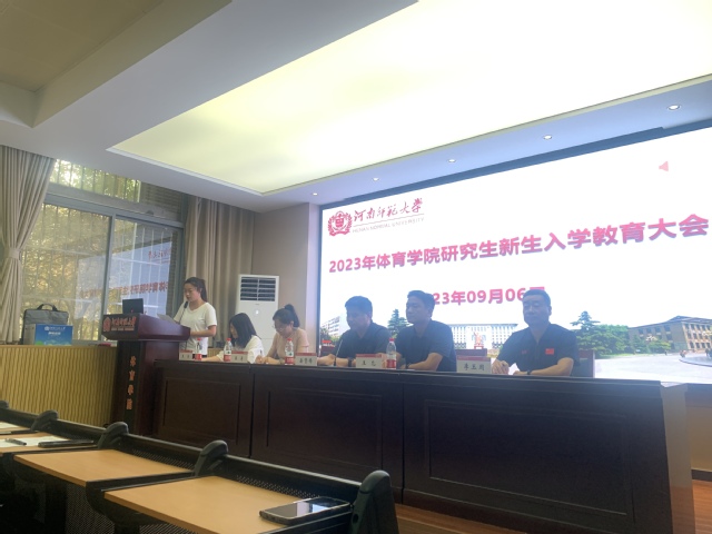 为切实做好2023级研究生新生入学教育工作,引导新生树立正确的世界观、人生观和价值观。9月6日下午,体育学院研究生新生入学教育大会在学院114会议室顺利召开。院党委书记王允、院长岳贤锋及相关负责人出席大会,全体研究生新生参加了本次大会。会议由研究生辅导员王芳老师主持。