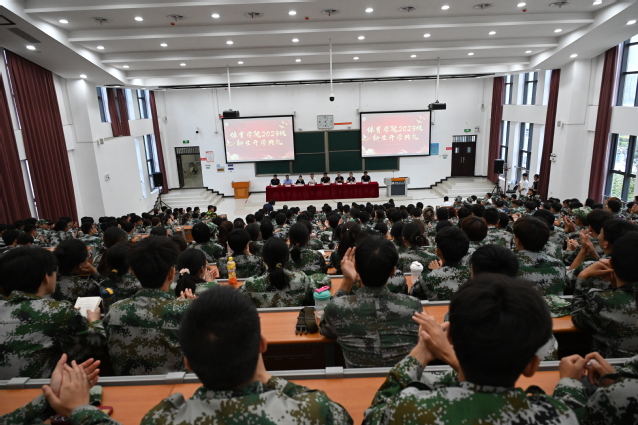 有志鸿鹄丰羽翼,高吟万里意飞扬。9月15日下午,体育学院2023级新生开学典礼在文昌楼127隆重举行。学院全体领导班子、科级干部、教师代表、全体专兼职辅导员及全体2023级新生参加了典礼。典礼由院党委副书记王芳主持。