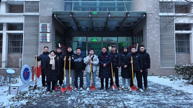 开学在即,一场突如其来的大雪后,校园内道路积雪成冰,给广大师生出行带来了诸多不便。2月21日下午四点,体育学院组织研究生开展扫雪除冰志愿服务活动。9名学生党员和1名团员在学院党委书记王允、党政办公室主任李鑫磊和薛杨老师的带领下不畏严寒,分组协作,互相配合,迅速投入清扫工作。经过大家一个多小时的奋战,体育学院门口道路上的积雪被大家清理干净,一条安全畅通的方便之路呈现在大家面前,使这个严寒的天气洋溢着“党员”的温暖。