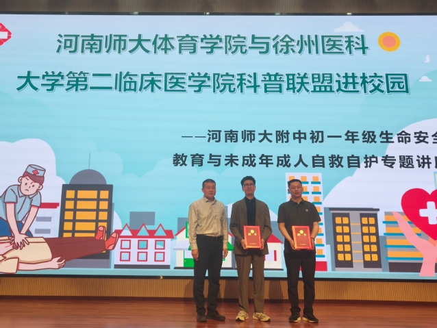 为进一步提升公众自救与互救素养,并积极响应教育部提出的提高校园急救能力、建设急救教育试点学校的要求,5月9日,河南师范大学体育学院与徐州医科大学第二临床医学院共建高校急救科普联盟签约仪式在体育学院二楼会议室顺利举行(以下简称“联盟”)。校团委副书记杨上上出席,徐州医科大学第二临床医学院团委负责人和河南师范大学体育学院团委负责人参加了仪式。