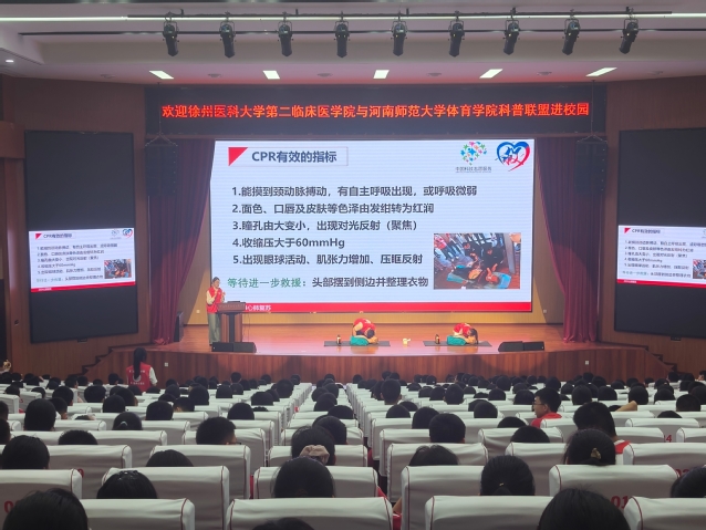 会后,双方共同到河南师范大学附属中学初中部开展急救科普志愿服务。活动现场,“联盟”急救志愿者们一一讲解并演示了成人心肺复苏术、婴儿心肺复苏术以及成人、婴儿气道异物梗阻——海姆立克急救法等内容。他们通过生动的案例和标准化的动作,使学生们对急救知识有了更加直观和深刻的理解。活动还走进教室,手把手指导孩子们进行心肺复苏操作,效果良好,受到附中老师和学生的一致好评。