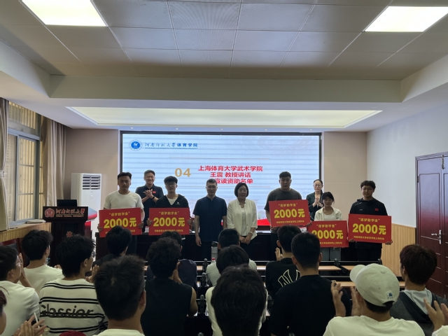 为落实好“为党育人、为国育才”职责使命,充分发挥资助工作育人实效,5月16日下午,体育学院在东区一楼114举办上海校友捐助的“2024逐梦助学金”颁发仪式。体育学院上海校友代表华东师范大学体育与健康学院董翠香教授、上海体育大学武术学院王震教授,院党委书记王允、党委副书记王芳出席仪式,“2024逐梦助学金”受助学生以及50余名师生代表参与活动。活动由王芳主持。