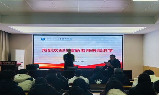12月6日下午,河南师范大学体育学院杰出校友、北京市日坛中学重点项目办公室主任、中国足球协会裁判员技术讲师、裁判监督徐富新作为北京校友学术报告团成员应邀回到母校,为体育学院师生带来了一场题为“如何成为一名国家级足球裁判”的专题讲座。体育学院相关领导、青年教师及学生代表共计60余人参加了本次报告,报告由学院党委副书记董长雨主持。