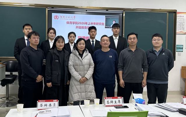 为进一步加强研究生培养过程管理,切实提升研究生培养质量,1月17日体育学院组织开展了2026年上半年研究生学位论文开题答辩会。开题汇报人数79人,参与答辩师生200余人,答辩会组织有序、学术氛围浓厚。