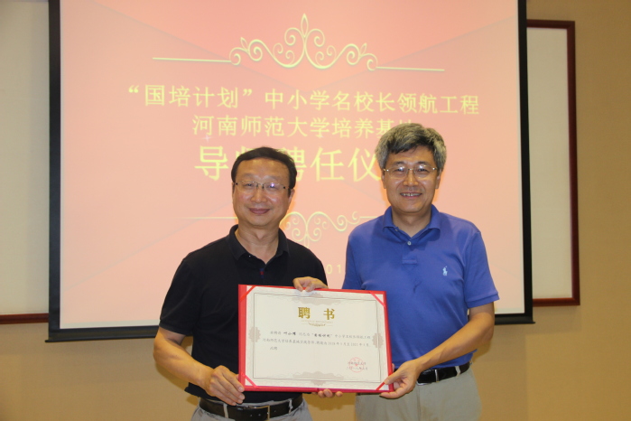 下午,于维涛为领航班作了“三层三段名校长培养体系构建与实施”的报告,一体即整体规划、个性指导、训用结合、连续培养和协同创新;三层即思想引领、实践创新和社会担当;三段即深度学习、导师指导、示范提升。他建议参加培训的学员要认识你自己,坚持规划引领发展的理念,并同各位参训校长进行深入交流,为各位导师颁发聘任证书。