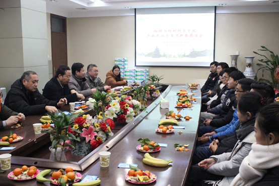 为更好做好少数民族学生教育管理工作,倾听学生心声,关心学生成长,1月13日晚,我院在物理北楼会议室举行少数民族学生迎新春茶话会。院党委书记李清富,院长杨宗献,副书记陈明银,各年级辅导员以及来自维吾尔族,土家族,蒙古族,彝族,畲族,满族等少数民族的28名学生参加了茶话会。茶话会由学院团委负责人王丹云主持。