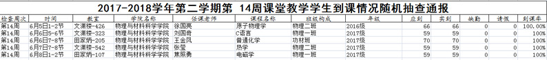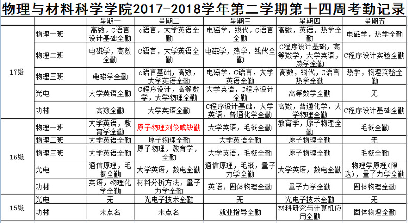 2017-2018学年第二学期第十四周考勤记录