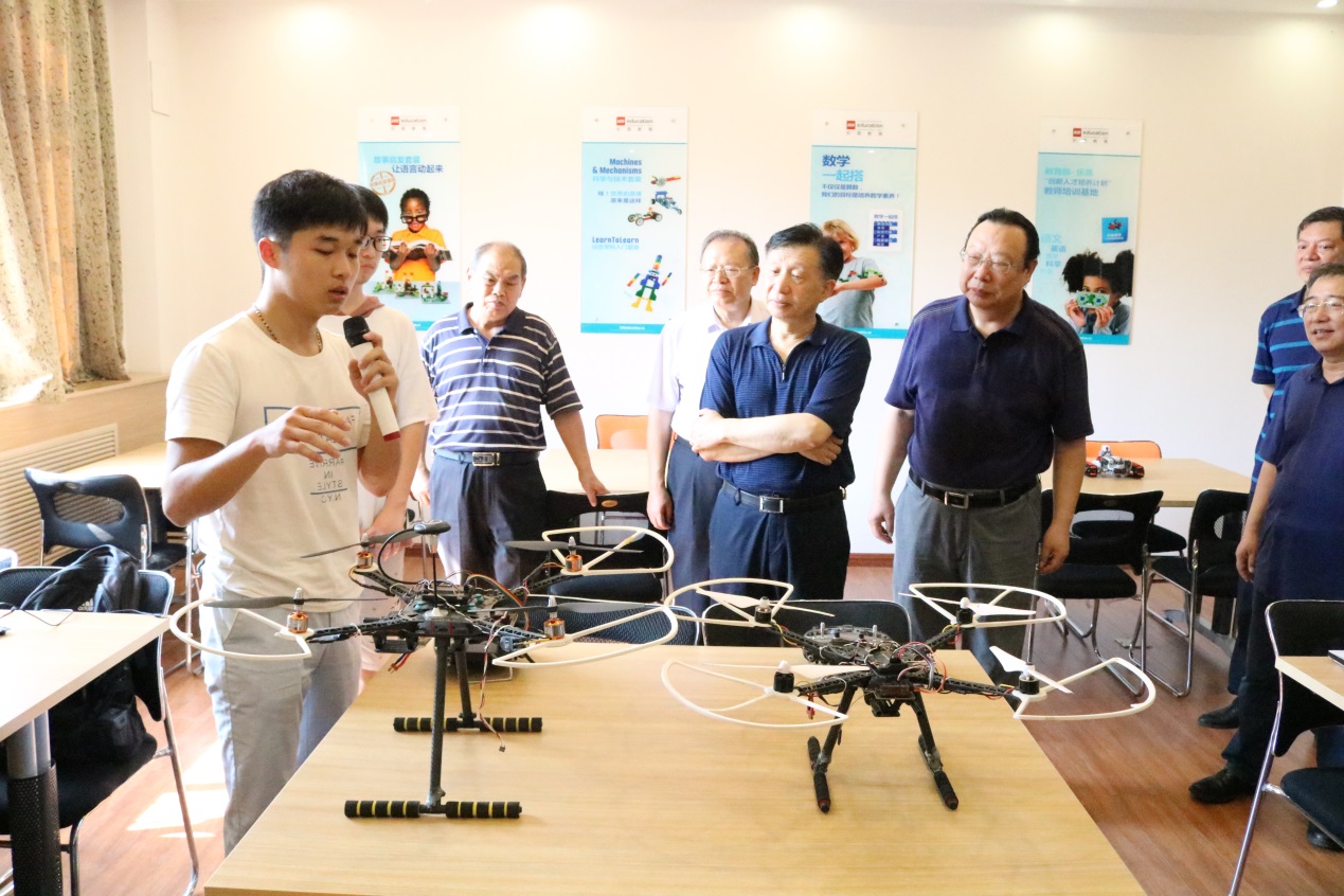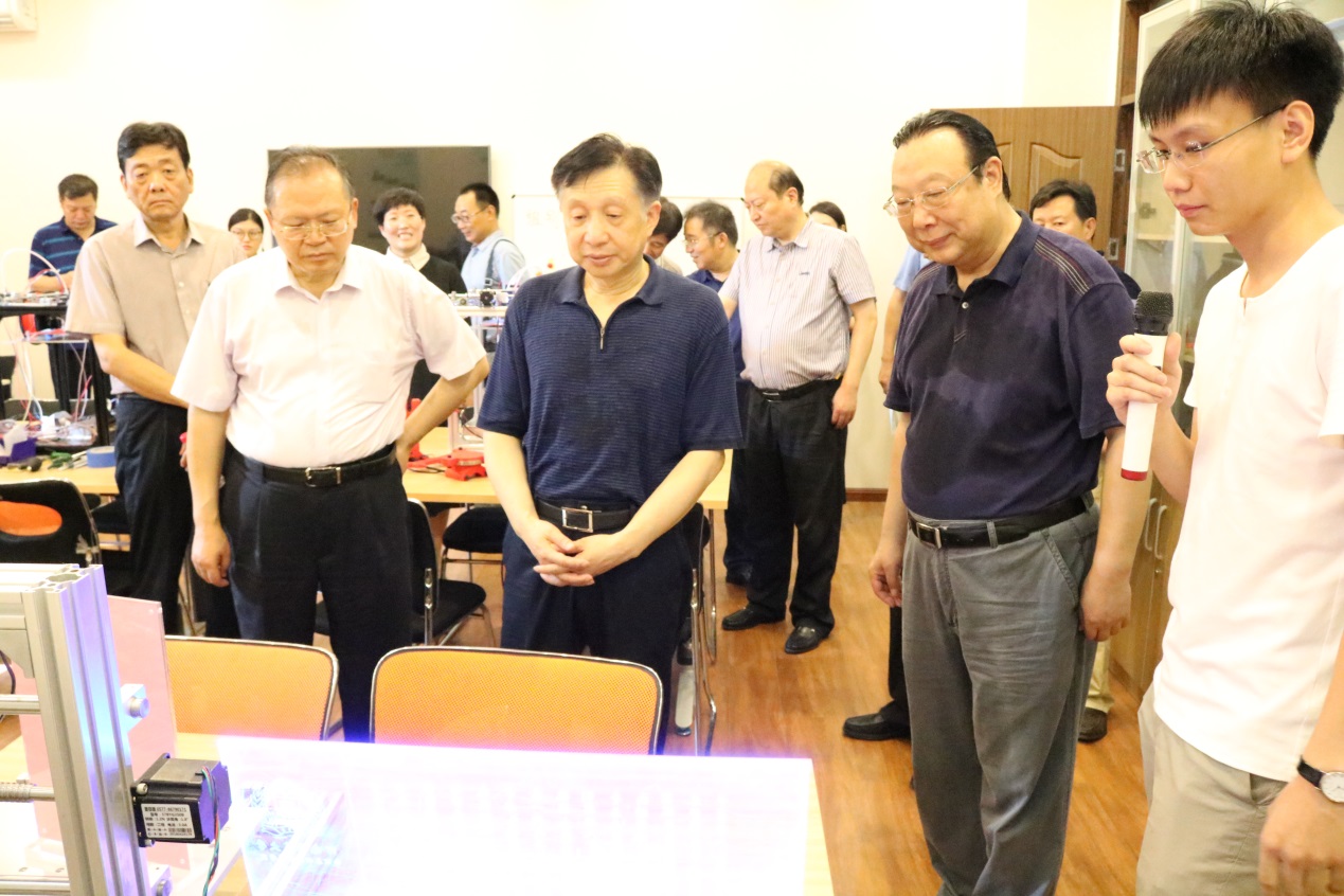 副院长赵旭向调研组详细汇报了学院创新创业实训基地建设和大学生创新创业教育情况,并带领调研组实地查看了教育部——乐高“创新人才培养计划”教师培训基地、机器人工作坊、智能物联工坊、人工智能工坊等大学生科技创新创业场所。在机器人工作坊内,李智民详细观摩了学生自己研发和组装的机器人,并就大学生如何将机器人更好地运用于实际生活进行了交流。在智能物联工坊内,李智民就大学生自己研发的实验教学系统的作用、原理、操作步骤等与学生进行了沟通。在人工智能工坊内,调研组成员认真观看了学生研发的无人机,对无人机的动力提供、续航能力等方面问题与学生进行深入交流。