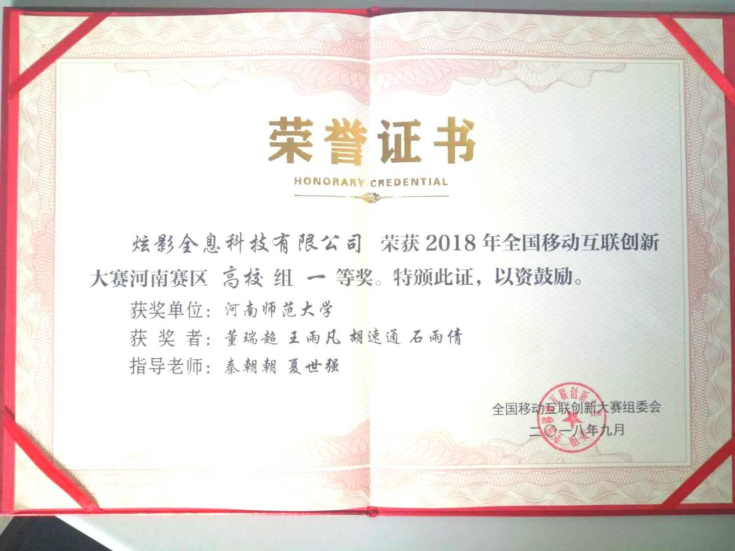 近日,从全国移动互联创新大赛组委会传来喜讯,在9月12日至14日第四届全国移动互联创新大赛河南赛区总决赛中,我院由秦朝朝、夏世强老师指导,董瑞超、王雨凡、胡速通、石雨倩四位学生组队参赛的项目《炫影全息科技有限公司》在进入总决赛的54个参赛项目中脱颖而出,经过激烈角逐,最终荣获一等奖。