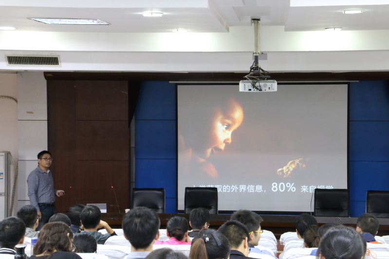 程云涛主要以《轻量化反射镜技术及应用》为题,向大家介绍了关于蜂窝夹芯轻量化反射镜及其关键技术;展示了中科院光电所轻量化反射镜技术发展及显示度产品;最后总结了轻量化反射镜技术的未来发展。其间介绍了随着望远镜的尺寸和质量的增加,制作费用、复杂程度和成本随之增加, 因此人们注意小型和轻型望远镜的研究。折反式或全反式光学系统的主要光学零件是反射镜,如何使这些反射镜质量减少,又能保证所要求的光学性能,是研制轻型望远系统及航天遥感仪器的重要技术途径。蜂窝夹层板作为一种轻型复合材料,具有弯曲刚度大、强度高、稳定性好、隔声隔热效果好等特点。因此报告首先介绍了望远镜的发展历程,说明了大口径反射镜轻量化的必要性。报告结束后,他与现场师生进行了互动,就大家提出的相关问题,给予了耐心细致的解答。