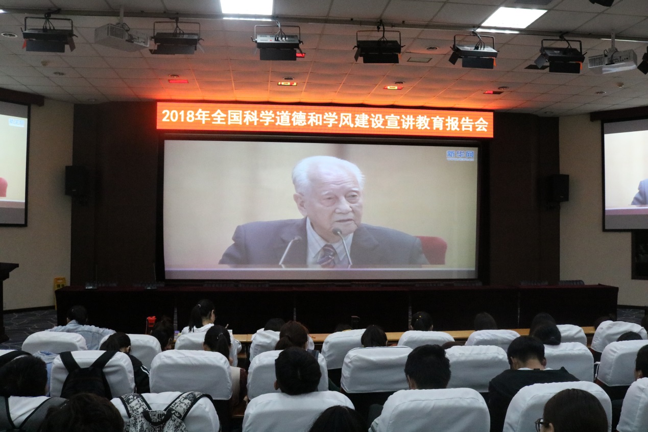 10月15日下午,2018年全国科学道德和学风建设宣讲教育报告会在北京人民大会堂举行。我院组织任课教师及各年级研究生、本科生代表300余人共同参加收看视频报告会。