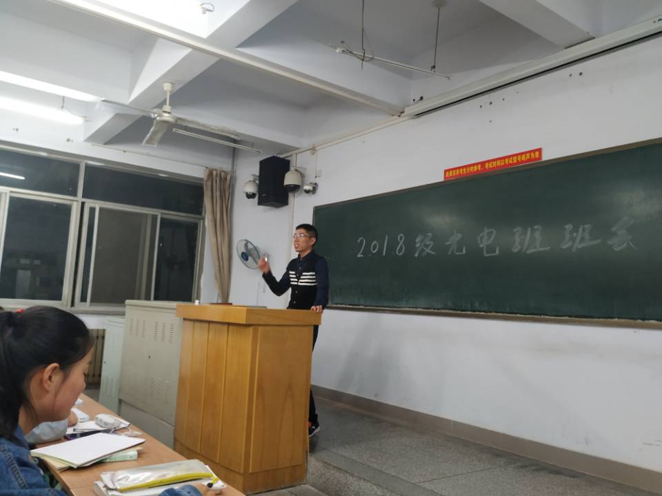 为引导学生们树立正确的学习目标,激发学生们的学习热情,鼓励学生以更加积极、饱满的态度投入到学习和生活中去,我院18级光电班于10月25日晚在启智楼208召开专业学习指导班会。本次班会由班主任张晓龙主持,18级光电班全体学生参加。
