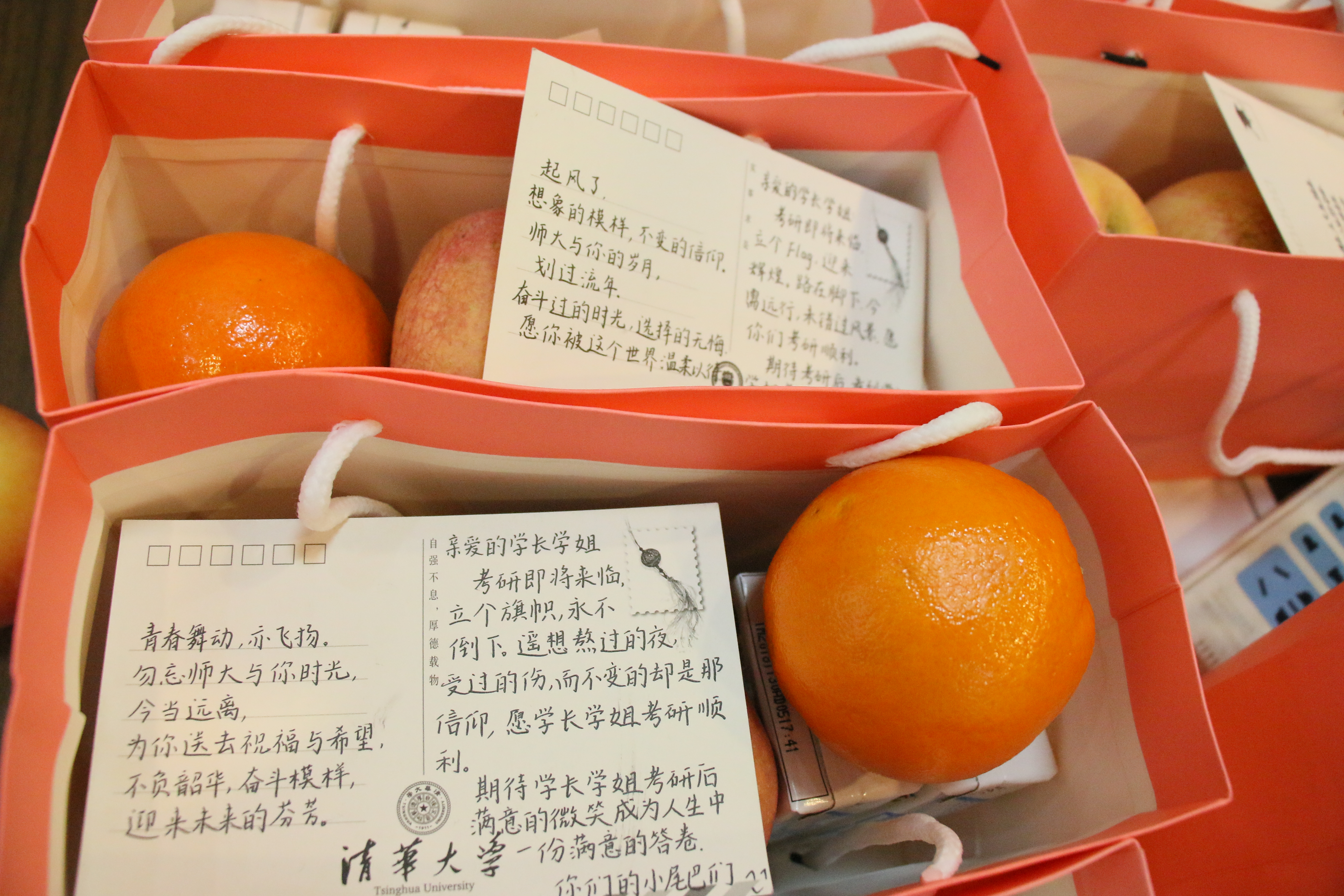 慰问结束后,学院领导老师将装有水果、牛奶和学弟学妹精心准备的祝福卡片的礼物分发给在场学生。贴心的礼物、热情的问候、暖心的关怀,让备战考研的同学们感受到来自学院领导老师的鼓励关怀和学弟学妹的爱心温暖。同学们纷纷表示,一定会抓住最后复习机会,全力以赴,积极拼搏,力争考上理想名校,以优异成绩回报学院的培养和关怀。