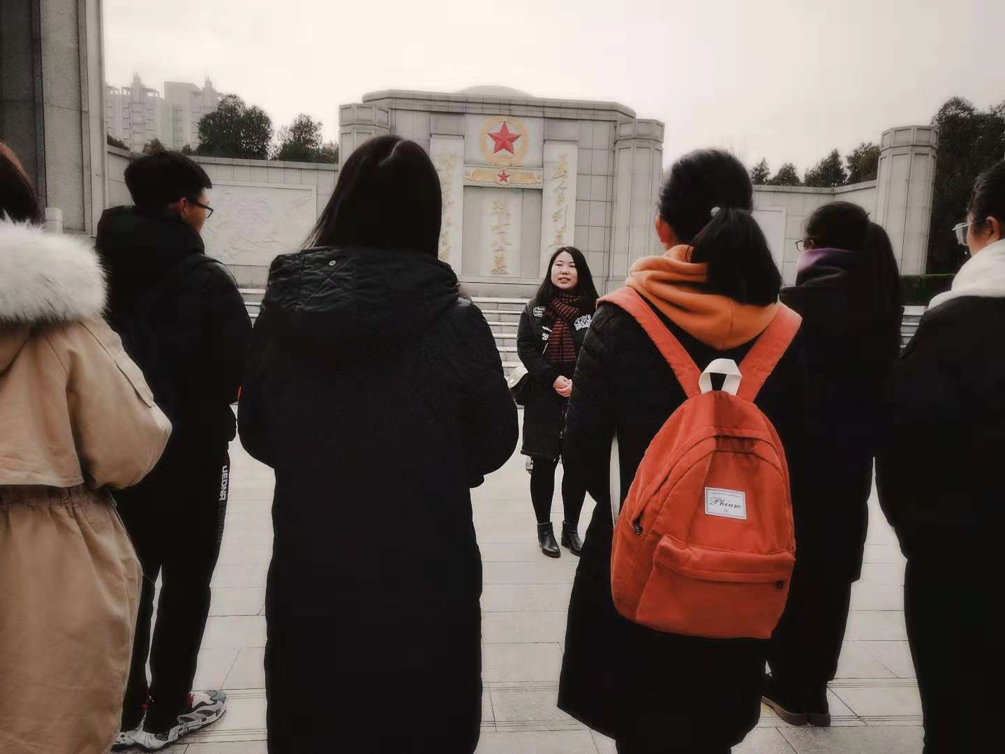 活动伊始,熊老师讲述了“一二·九”历史事件的背景、经过与重要意义。她讲到:纪念“一二·九”事件对我们当代大学生所具有重要的教育意义。作为新时代的大学生,同学们要缅怀昨日,反思今日,不忘国耻,更要畅想明日,勇担使命,真正成长为一名有理想有志向的大学生。随后,老师、同学们全体肃立在烈士纪念碑前组织默哀,向英勇牺牲的烈士三鞠躬并献上自己制作的白花。