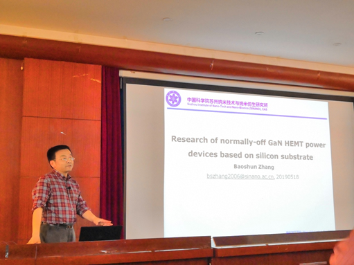 张宝顺研究员以《硅基GaN增强型HEMT功率器件研究》为题,向师生介绍了芯片在光电子和微电子技术中的重要应用。在报告中他指出目前在光电子和微电子技术方面有很大的发展空间。他根据自己的研究经历介绍了GaN体现的优越的材料特性;GaN功率器件的优点,低损耗、高频率等。他从垂直及平面结构介绍了GaN功率晶体管技术,之后简要说明了目前所面临的挑战。