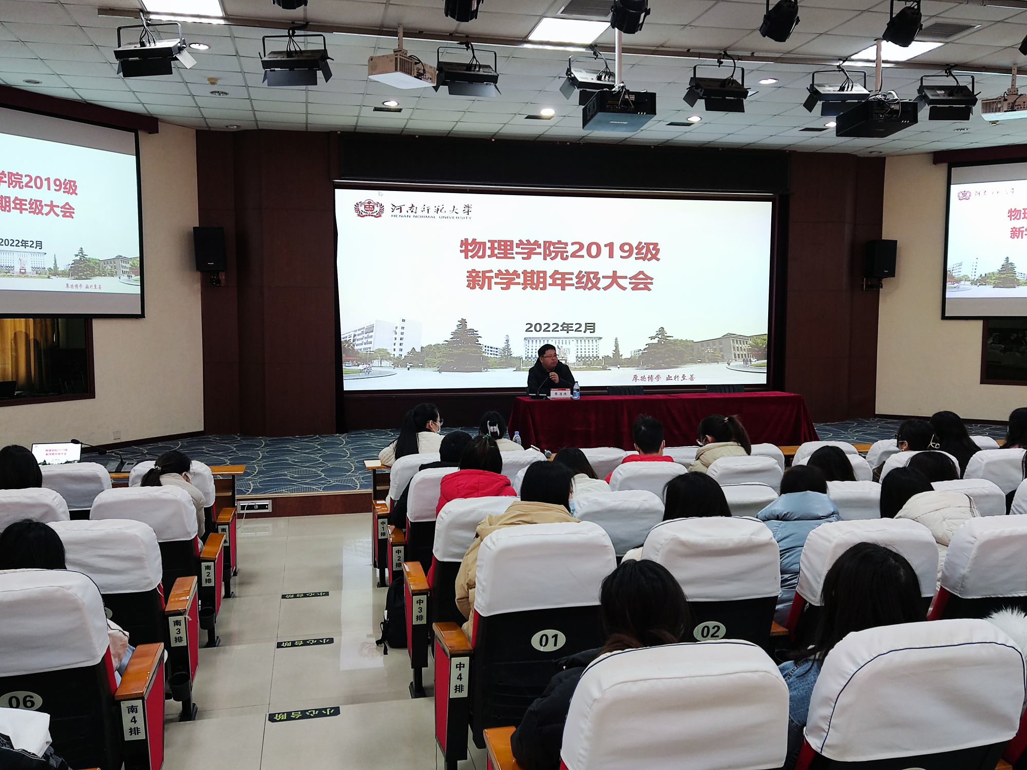 为更好的了解学生近况,更深入的开展好学生工作,2月22日上午,我院2019级本科年级在物理北楼三楼报告厅召开新学期年级大会,辅导员张浩兴和全体2019级本科生参加了本次大会。