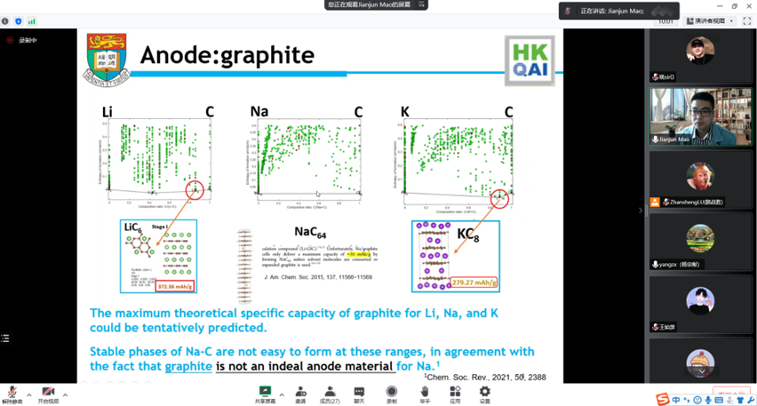 锂离子电池在人们日常生活中扮演着越来越重要的角色。电极作为其主要的组成部分,其各方面性能也尤为重要。毛建军博士后在本次报告主要结合Evolutionary Algorithm算法和Cluster Expansion方法从理论上预测了电极材料在充放电过程中可能存在的结构,稳定性以及其他相关的性质。