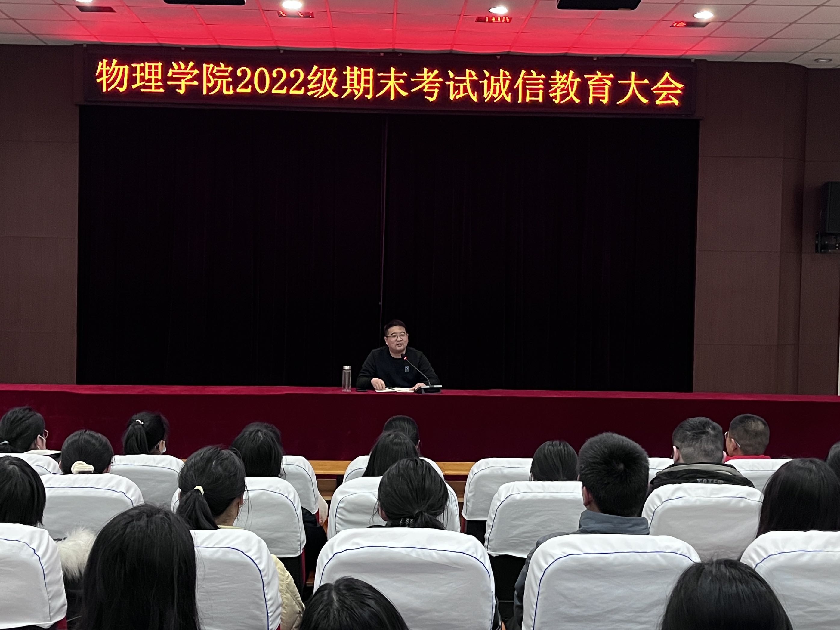 为加强诚信教育,培育优良学风,提高同学们对考试纪律的认识,顺利迎接期末考试,2月12日下午,学院在物理北楼三楼报告厅召开2022级期末考试诚信教育大会。学院团委书记、2022级和2020级辅导员王丹云老师主持会议,2022级全体本科生参与本次会议。