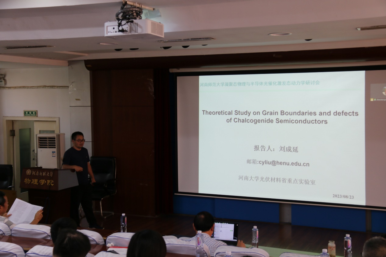 8月23日,应我校物理学院邀请,河南大学刘成延教授应邀为我院师生作题为“铜锌锡硫太阳能电池电极设计的理论研究”的学术报告,物理学院相关专业师生参加了报告会。