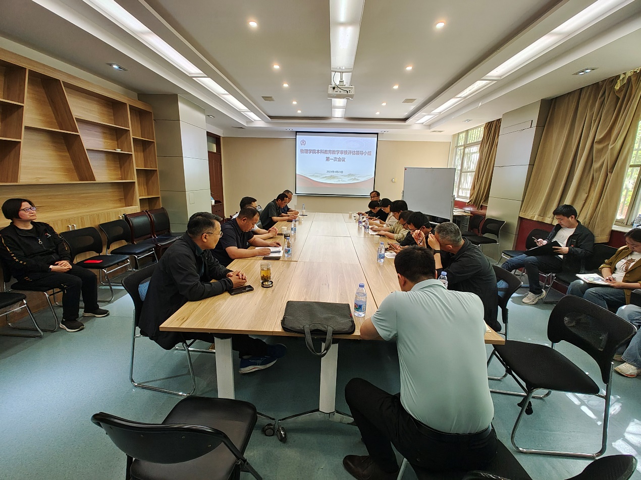 4月23日,物理学院本科教育教学审核评估领导小组第一次会议在物理北楼C103召开,学院本科教育教学审核评估领导小组全体成员参加了本次会议,会议由副院长秦朝朝主持。