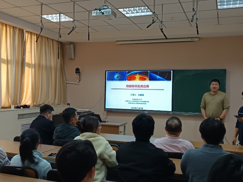 应我校物理学院邀请,北京航空航天大学北京航空航天大学杜鹏程副研究员来我校进行学术交流和访问。11月1日,在物理南楼217会议室为我校师生呈现了一场精彩的报告,报告题目为“地磁探测及其应用”,学院相关专业教师、研究生和本科生参加了此次报告会。