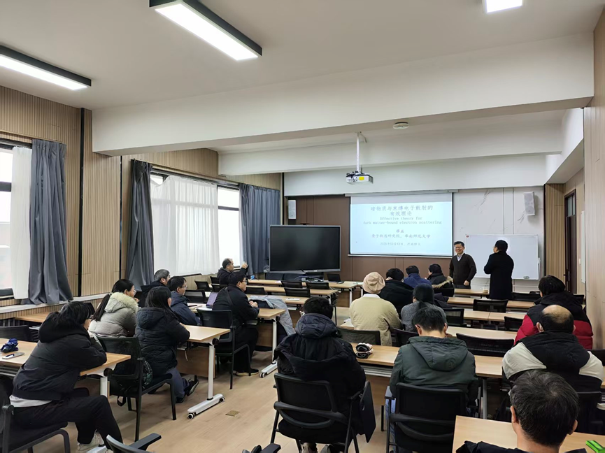 12月12日下午,华南师范大学廖益教授应邀为物理学院师生作题为“暗物质与束缚电子散射的有效理论”的学术报告,本次报告由杨金民教授主持,学院相关专业教师及研究生共同参加学习。