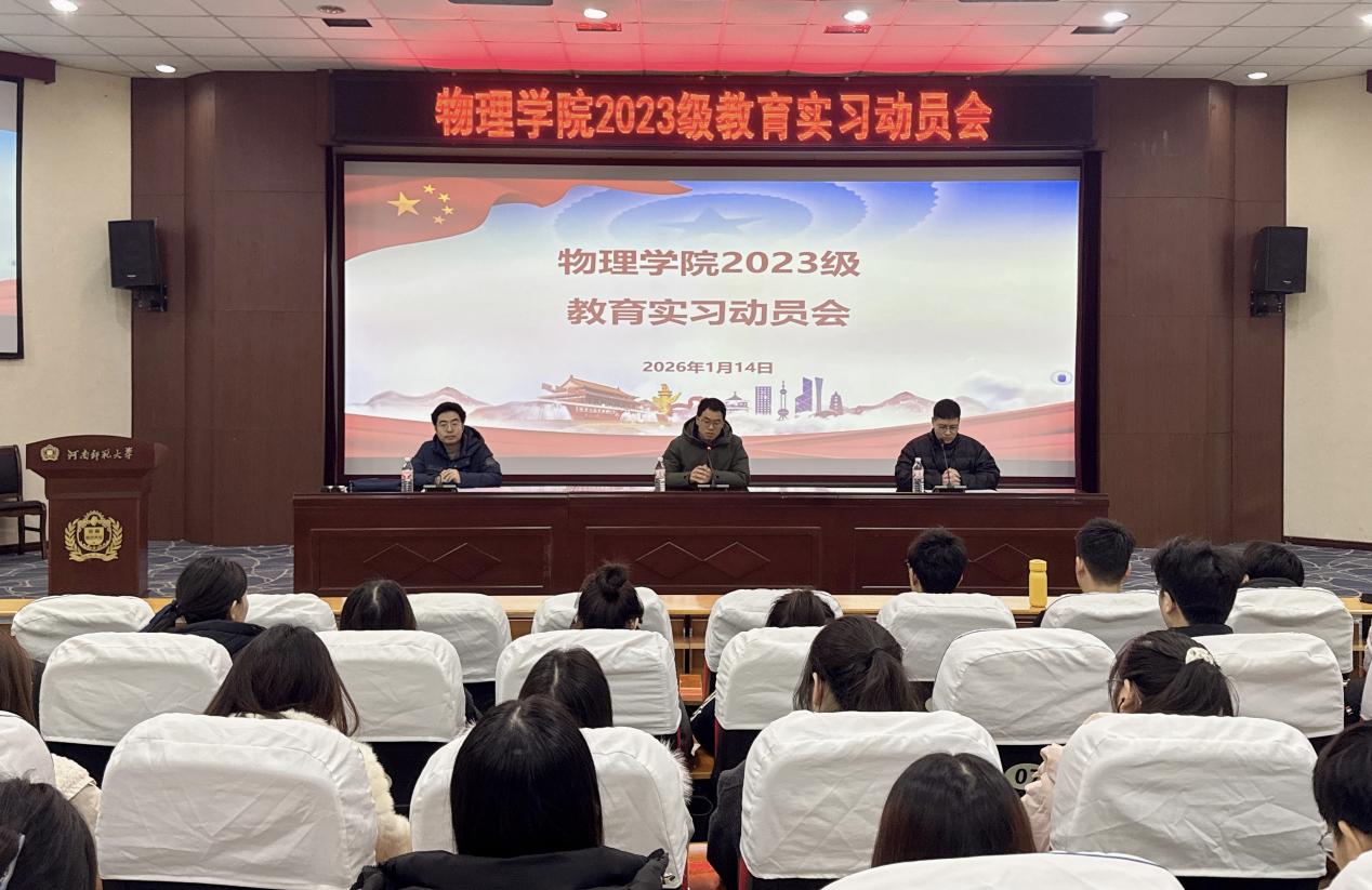 为扎实推进师范生教育实习工作,明确各项实习要求,1月14日晚,物理学院在物理北楼报告厅召开2023级教育实习动员大会。物理学院副院长张喜林、物理学科教育研究所赵亮博士、2023级辅导员及全体师范生参加了本次大会。