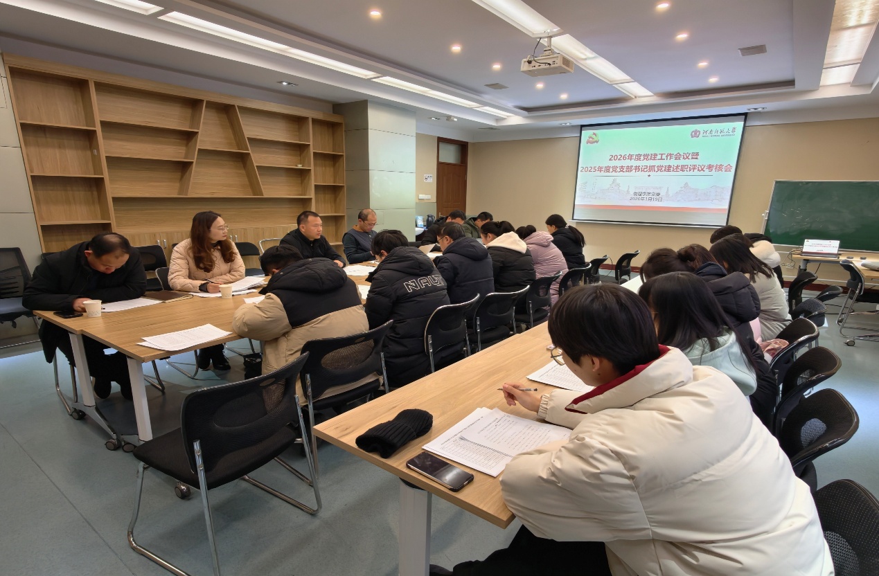 为落实管党治党政治责任,严肃党内政治生活,推动全面从严治党向基层延伸,1月19日下午,我院召开2026年度党建工作会议暨2025年度党支部书记抓党建述职评议考核会。学院党政领导、党委委员、各党支部书记和党员代表参加了会议。会议由学院党委副书记刘宁主持。