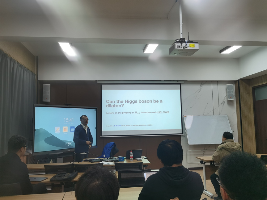 1月21日下午,中国科学院大学晏启树教授应邀在物理北楼C-505室为物理学院师生作题为“Can the Higgs Boson be a Dilaton?”的学术报告,本次报告由李田军教授主持,学院相关专业教师及研究生共同参加学习。