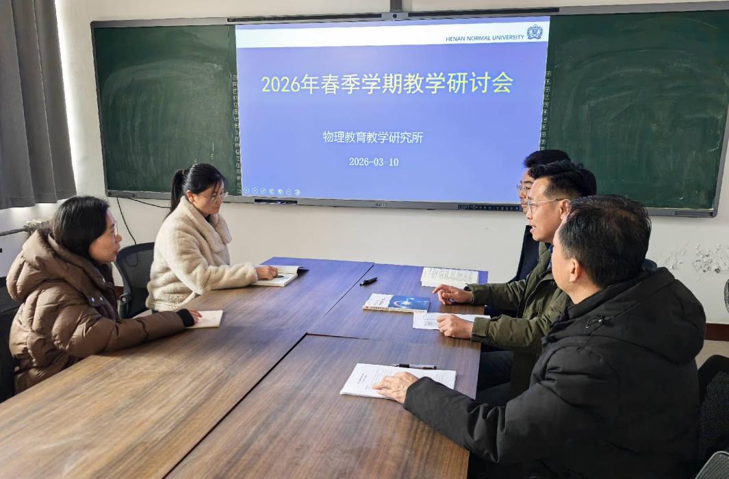 2026年3月10日下午,物理教育教学研究所于物理北楼A309组织召开2026年春季学期教学研讨会,陈运保、杜爱慧、靳来鹏、陈留定、赵亮五位教师参会,统筹部署研究所新学期教学规划工作。