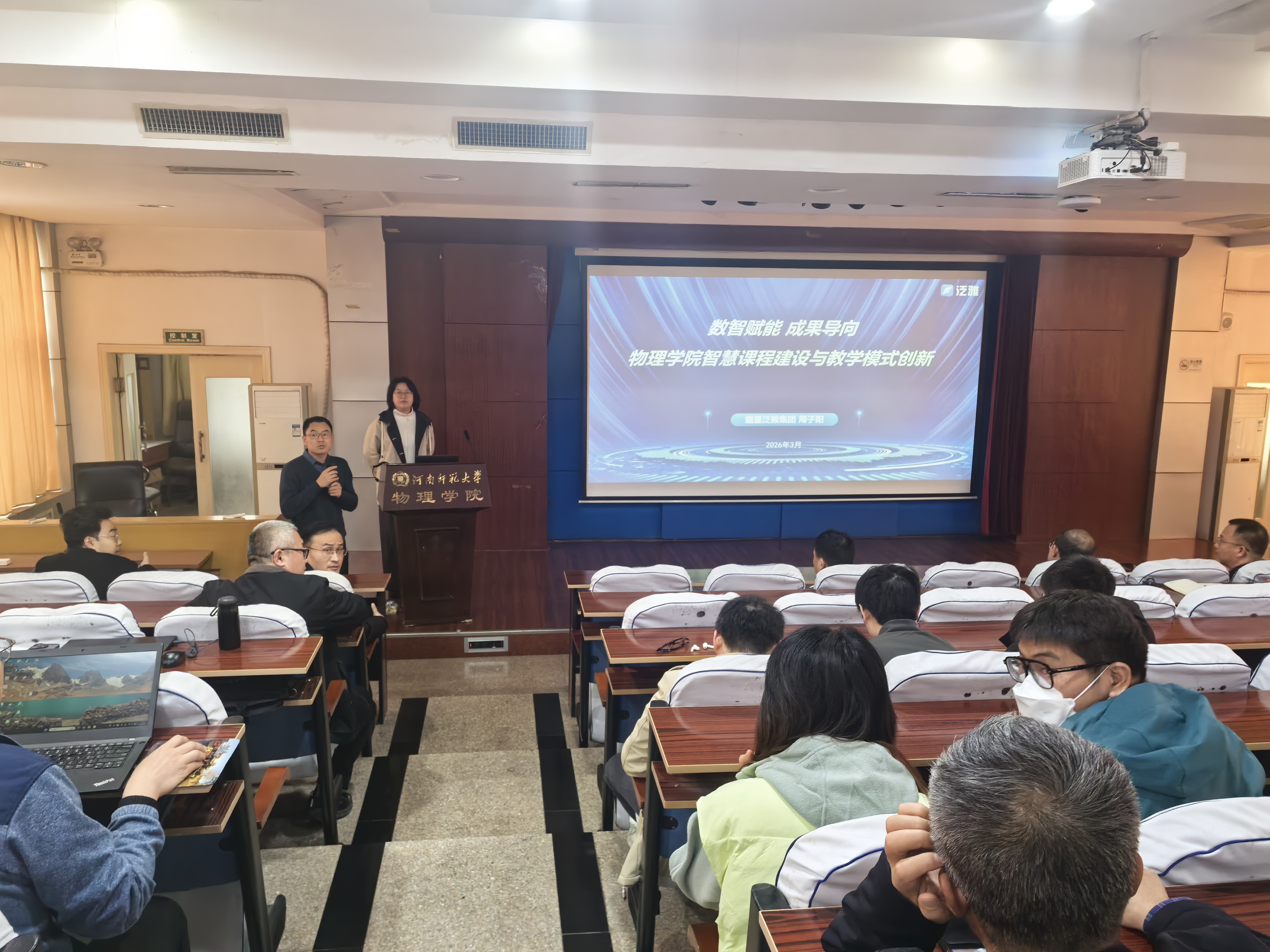 为加强学院智慧课程建设质量,2026年3月24日,物理学院于物理南楼二楼报告厅召开智慧课程建设专题培训会,会议由学院副院长张喜林主持。