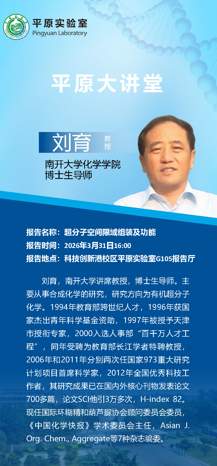 南开大学化学学院刘育教授将应邀来我实讲学