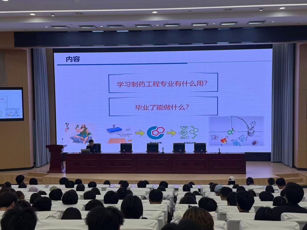 活动中,马春华以 “制药工程专业研究方向——新药研发”为主题开展讲座。他从制药工程专业的现实意义、行业发展前景两大维度展开讲解,结合我国医药产业发展趋势与人才需求,系统介绍了专业培养目标、核心课程体系、实践教学环节和创新创业教育等内容。