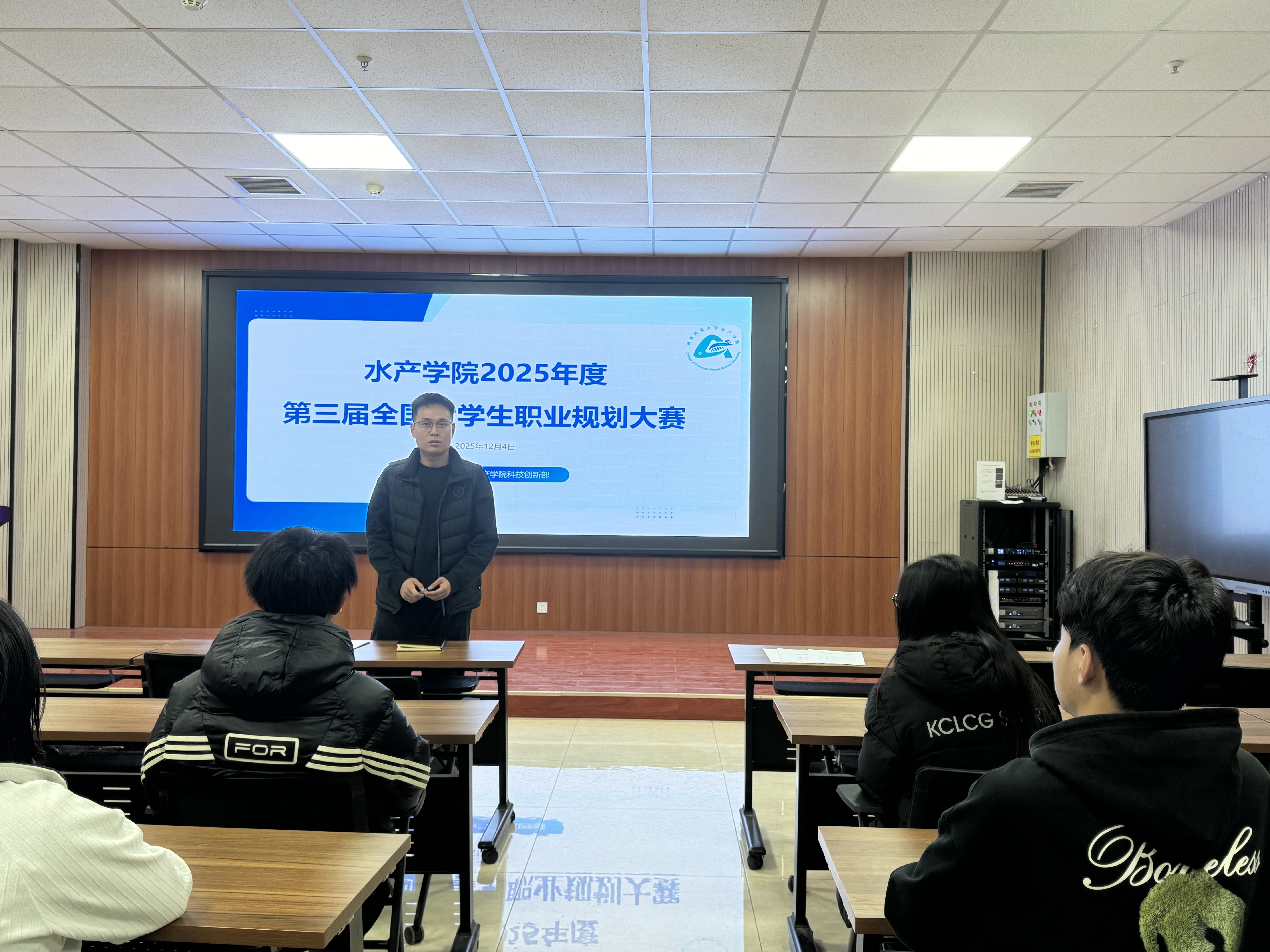 为引导学子树立科学职业观,锤炼职业规划核心能力与就业竞争力,2025年12月5日,水产学院于实训楼203会议室举办全国大学生职业规划大赛院级选拔赛。