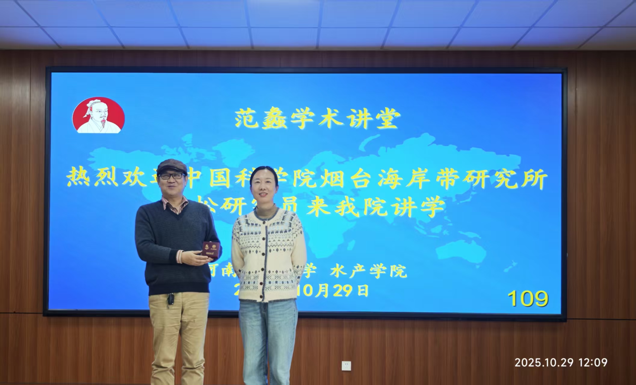 10月29日上午,团队张曼老师邀请中国科学院烟台海岸带研究所秦松研究员来我院讲学,秦松研究员作了题为“鱼在在藻格万物,一藻一池一世界”的学术报告。报告会由张曼副教授主持,我院教师、研究生及本科生共60余人聆听了报告。