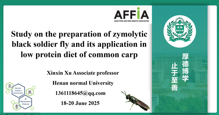 本团队教师徐歆歆博士参加了此次会议并分享了题为“Study on the preparation of zymolytic black soldier fly and its application in low protein diet of common carp”的报告,并与参会学者进行了深入研讨和交流。此外,本团队硕士研究生席悦同学提交的“Zymolytic black soldier fly could improve the antioxidant capacity and immunity of common carp (Cyprinus carpio)”和“Dietary zymolytic black soldier fly in low-protein diets on growth performance, body composition, and fatty acid composition of common carp (Cyprinus carpio)”的论文摘要也被会议收录,使团队在此领域的最新研究成果得到分享。