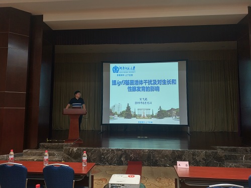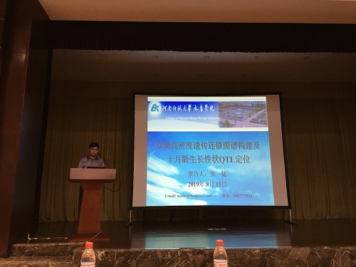 开幕式后,桂建芳院士、刘英杰副院长、中国渔业协会王德芬副会长、复旦大学卢大儒教授、大北农神爽水产科技集团易敢峰总裁分别作了“水产养殖转型升级与生态净水渔业”、“全国重点水域专项组织策划基本情况汇报”、“中国淡水珍珠养殖产业发展报告”、“生命的哲学思考”和“新时代水产业发展的共生思维与科技创新应用”五个大会主题报告。除大会报告外,本次会议还设置了4个专题分会场及墙报展示,83位会议代表围绕遗传育种、营养饲料、病害防治、水生动物行为学、生态环境保护等多个学科领域进行了深入而广泛的汇报交流。我院青年教师张猛博士、宋飞彪博士以及研究生徐瑜凤、张江凡和吕红皂分别作了分会报告,其中,张猛博士题为“草鱼高密度遗传连锁图谱构建及十月龄生长性状QTL定位”的报告获得会议报告一等奖。
