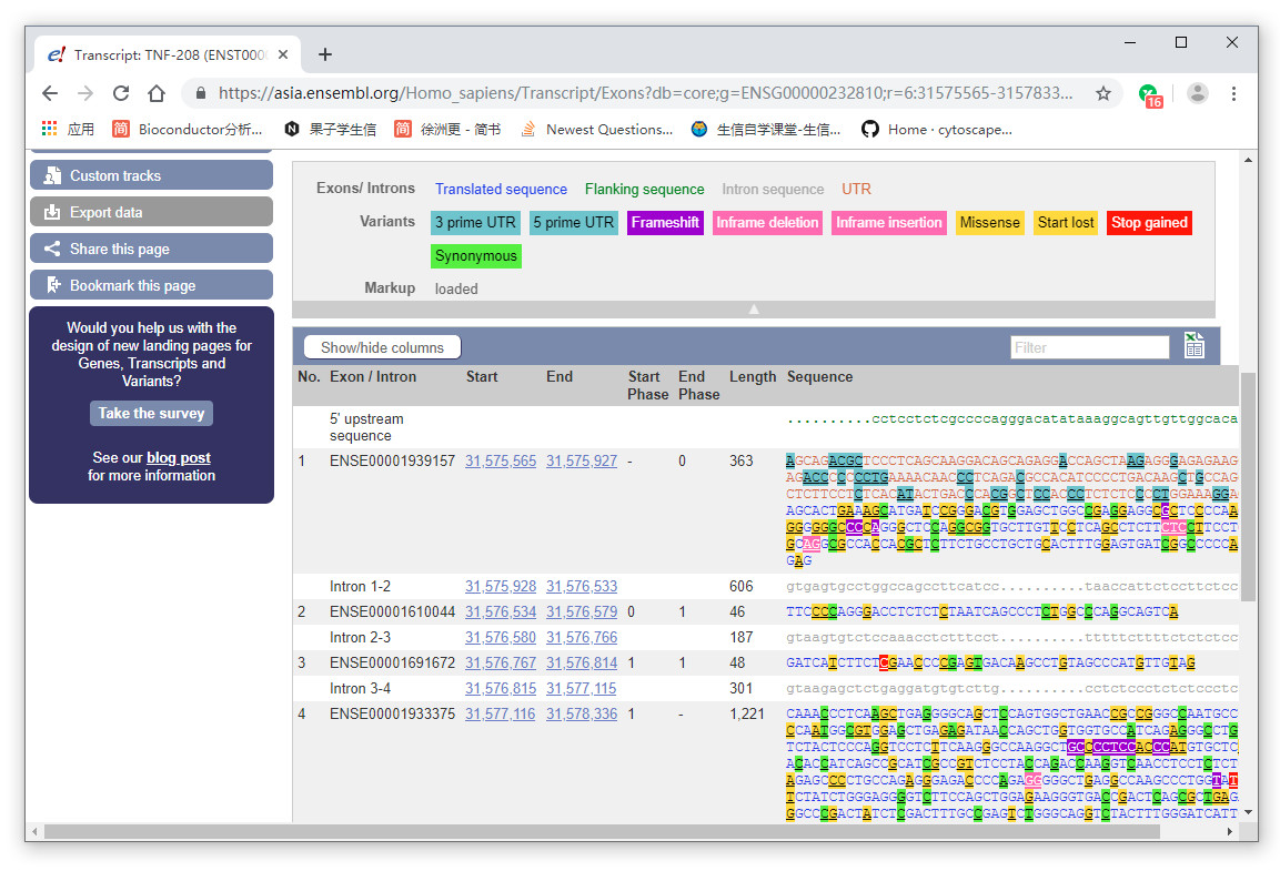 这里举个简单的例子,假设已经从文献、数据库(如ensembl,下图)或是GTF/GFF文件拿到了准确的基因结构信息。