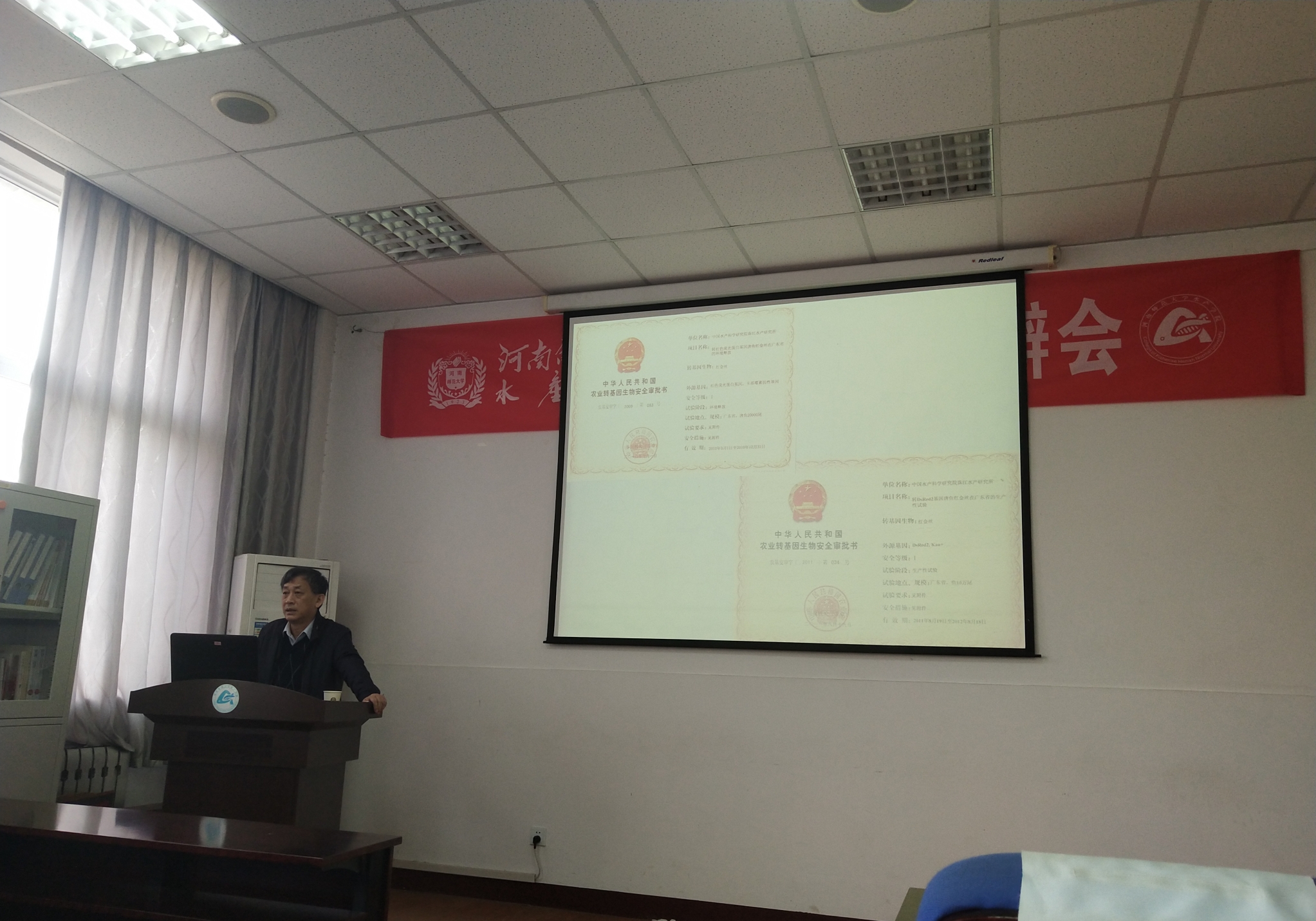 白俊杰研究员作了题为“转红色荧光蛋白基因唐鱼构建和安全评估”的学术讲座,详细介绍了唐鱼转红色荧光蛋白基因的重要意义、详细技术规范以及生物安全评估的具体操作。讲座结束后,与会师生就有关转基因技术的目前形势和应用前景、转基因生物安全、农业转基因生物安全审批程序、青年科研人员未来的研究定位等问题与白俊杰研究员进行了深入的沟通和交流。目前,团队与珠江水产研究所正在开展大口黑鲈遗传育种等方面的合作,并取得初步成果。