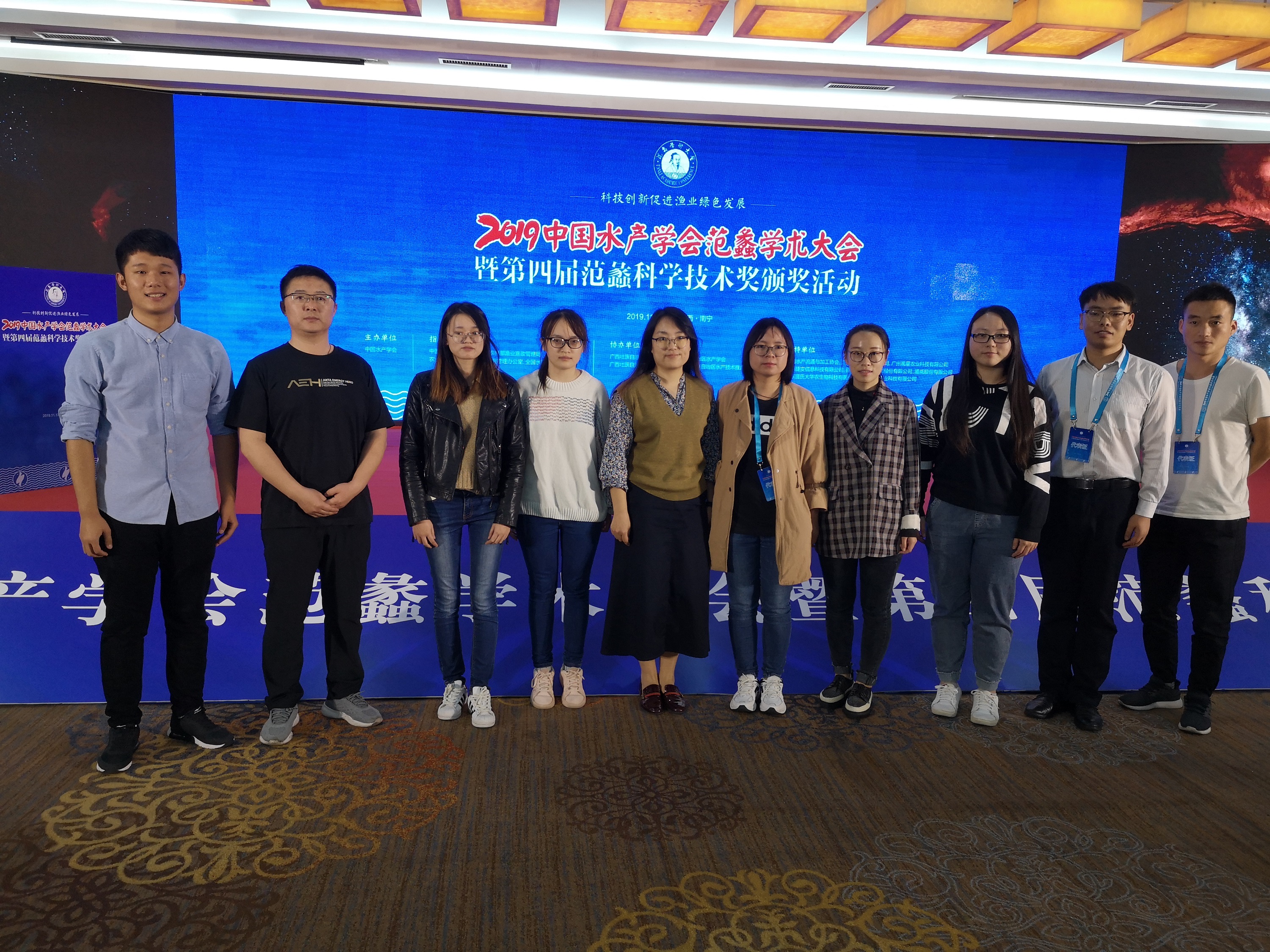 11月13-14日,2019中国水产学会范蠡学术大会暨第四届范蠡科学技术奖颁奖活动在广西南宁举行。此次活动由中国水产学会主办,中国科协学会学术部、农业农村部渔业渔政管理局、农业农村部长江流域渔政监督管理办公室、全国水产技术推广总站指导。共有来自于全国水产相关科研院所、高校和企业等的800余名代表参加。