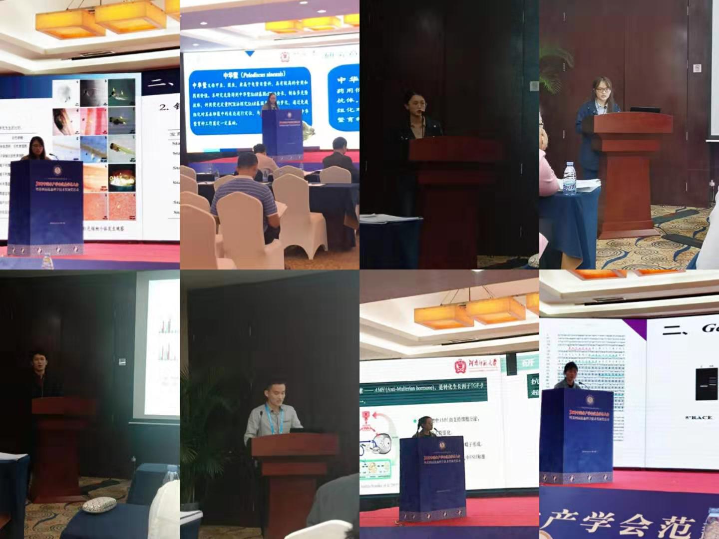 在本次活动中,我团队共有11人参会,提交摘要9篇。在水产生物技术与育种分会场,田雪副教授和研究生陈军平、王静、岑双双、冯彩、刘倩、段晓迪、姜洲等分别就“锦鲤体色形成相关的mRNA和miRNA鉴定与筛选”“黄河鲤高密度遗传图谱的构建及生长性状动态QTL分析研究”“花䱻 AMH 基因克隆表达及雌二醇对其表达的影响”“中华鳖Gper基因克隆、表达及精巢中功能分析”“锦鲤GTP环水解酶2基因的克隆、表达与定位”“中华鳖StAR基因的克隆、表达及多克隆抗体制备”“瓦氏雅罗鱼线粒体基因组对盐碱环境适应性研究”“鲤Slc15基因的系统发育分析及乳酸乳酸菌对其调节作用的研究”进行了报告,引起了现场学者的广泛关注。
