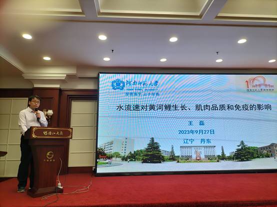 我们团队王磊老师参加该次产业研讨,并作了名为《水流速对黄河鲤生长、肌肉品质和免疫的影响》大会报告。