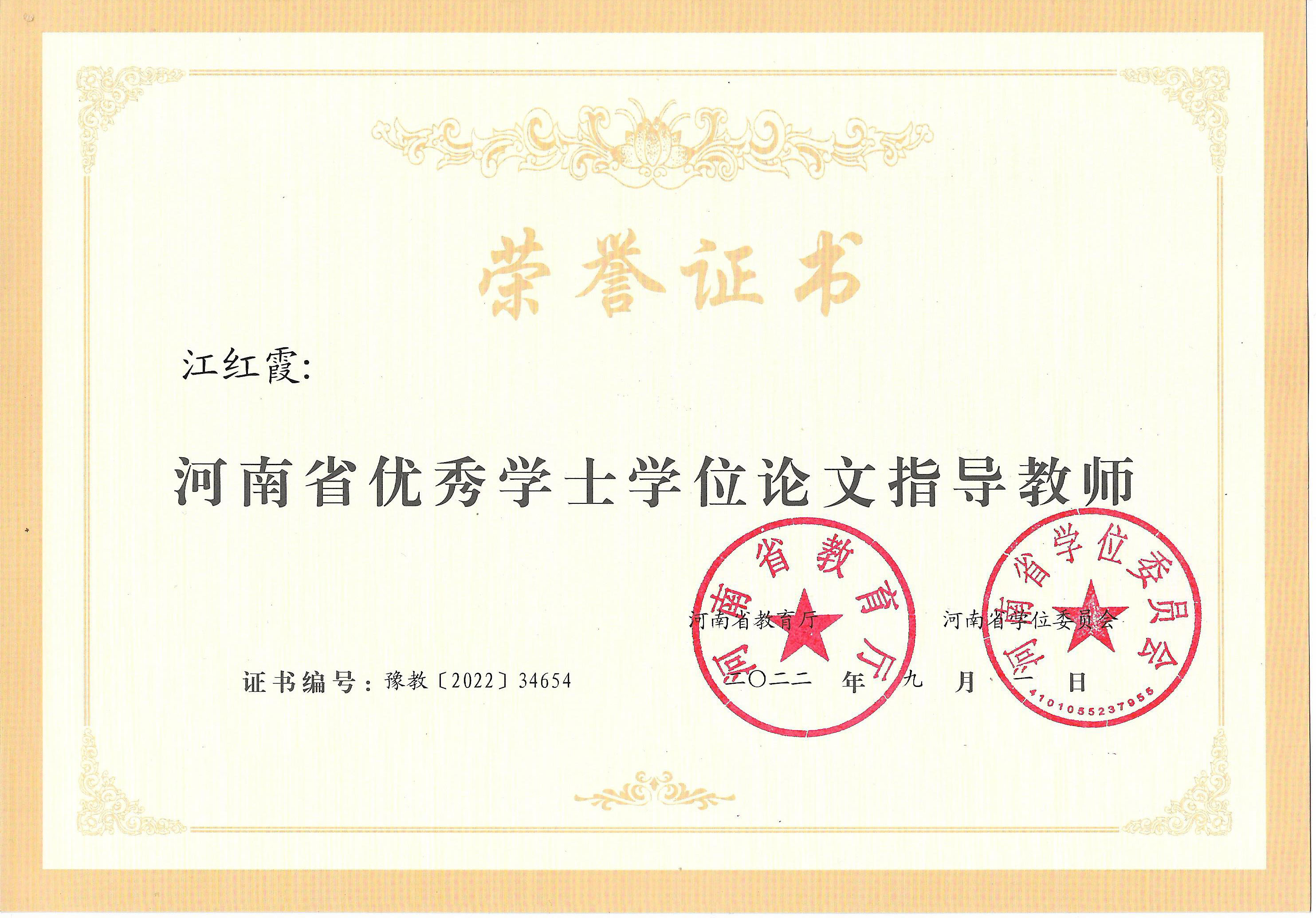 恭喜江红霞老师荣获2022年河南省优秀学士学位论文指导教师