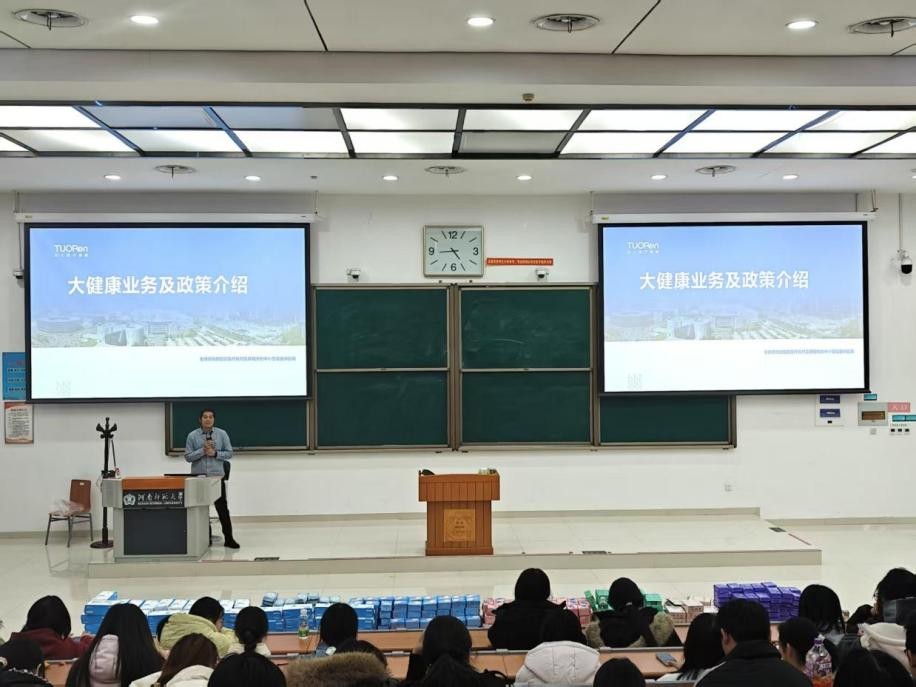 • 为深化校企交流合作,拓宽学生就业渠道,12月7日下午,商学院商业英才实验班与实训基地携手驼人集团,于文昌楼302教室举办商业认知及产品宣讲会。商业英才实验班指导教师、部分学员与实训基地学生代表参加本次活动。会议由实验班负责人侯明利主持。会上,侯明利对驼人集团大健康业务市场总监潘家华一行的到来表示热烈欢迎。潘家华通过宣传片向同学们展示了集团的发展历程与企业文化,并聚焦大健康业务板块,详细介绍了集团在个人防护、居家健康监护及医美产品领域的产业布局和智能血压仪、医用抗菌口罩及械字号卫生巾等核心产品,充分展现出企业多元化生产的经营特色。他结合自身职业经历,建议同学们夯实商科专业技能,努力成长为应用型、复合型的高素质商科人才。侯明利表示,商业英才实验班期待与驼人集团建立可持续的校企合作机制,帮助同学们丰富实践经验,提升商业素养,拓宽职业发展渠道。在交流环节中,同学们围绕企业招聘计划与实习就业等问题踊跃提问,潘家华逐一作出细致解答,并现场赠送企业系列产品供同学们体验。本次宣讲会有效促进了校企之间的优势互补与资源共享,有利于建设产教融合与协同育人的长效机制,助力同学们提升职业认知水平与职业发展潜能,