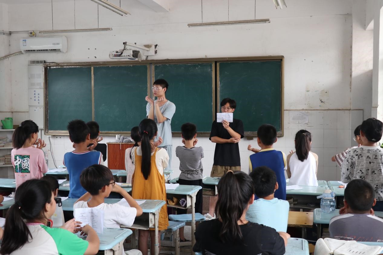 在支教活动第一天,志愿者们充分发挥自身专业优势,利用专业技能,采用喜闻乐见的方式,开展了一场内容丰富、别开生面的课堂活动。在教学互动中,实践队员通过近距离观察孩子们的行为表现,以留守儿童性格特点、年龄特点为出发点,在课堂中间穿插播放动画视频,进行游戏互动,在灵动风趣的画面与丰富多彩的游戏中向学生传播关爱与温暖,消除实践队员与孩子们之间的陌生感,拉近了彼此的距离。