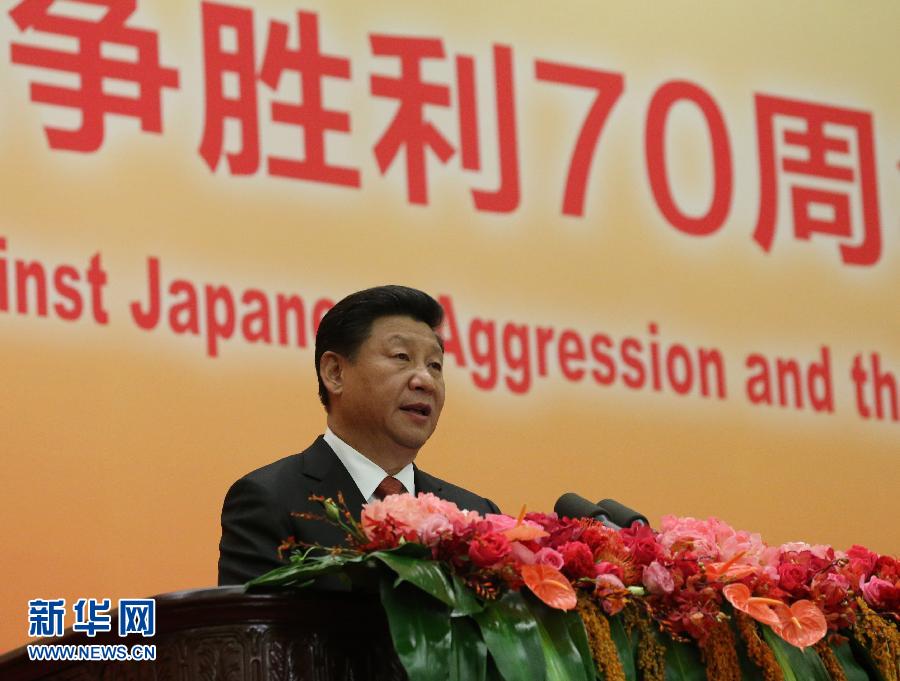 9月3日,纪念中国人民抗日战争暨世界反法西斯战争胜利70周年招待会在北京人民大会堂隆重举行。中共中央总书记、国家主席、中央军委主席习近平出席招待会并发表重要讲话。