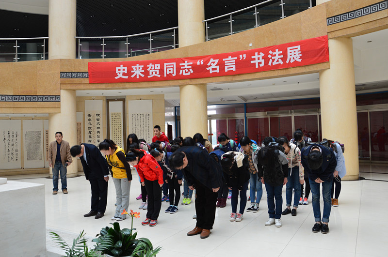 马新峰副书记带领全体师生进入展厅,展厅内收集了史来贺同志生前实物、相关证书等,全面介绍了史来贺书记“人不离刘庄,身不离劳动,心不离群众”的先进事迹。在参观史来贺书记生前的办公室时,马老师结合“坚定信念、共同富裕,实事求是、与时俱进,无私奉献、一心为民,艰苦奋斗、勤俭创业”的“史来贺精神”,勉励同学们要以优秀共产党员为楷模,坚持“为人民服务”的宗旨,从现在做起、从自身做起、从身边事做起,做广大同学的榜样,带领大家刻苦学习、努力成才。同学们纷纷表示,一定要自觉增强党员的责任感与使命感,在今后的学习、工作和生活中,切实贯彻“史来贺精神”,提高思想觉悟,提升责任意识,改进工作作风,提高综合素养,努力做中国特色社会主义事业合格建设者和可靠接班人。