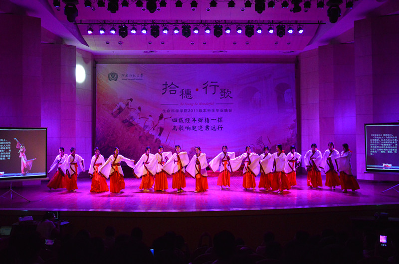 此次晚会内容新颖,形式创新,全程无主持,通过情景剧无缝衔接,贯穿了2011级毕业生在师大的欢笑、泪水、追求与不舍。各具特色、激情四射的汉、回、朝鲜、维吾尔等多民族舞蹈拉开了晚会帷幕。韩国交换生金沅俊带来的歌舞《Fantastic Baby》动感十足,用高亢嘹亮的歌声和轻快活泼的舞姿完美结合,引发观众热情,赢得阵阵喝彩。端庄优雅、婀娜多姿的古典舞《窈窕淑女》,仿佛让观众穿越千年、回到汉唐盛世。舞台情景剧《最好的时代》以毕业生四年学习生活为线索,展现了生科院2011级学子四年学习生活的点点滴滴,以及为实现梦想而奋力拼搏的无悔青春故事,其以最后一次点名、最后一次紧拥、最后一次合影将毕业学子的心紧连在一起,拨动观众们的心弦,让全场毕业生潸然泪下。2011级辅导员韩婧以一曲《最初的梦想》作为心声,表达了她对2011级毕业生坚守梦想、不忘初心的殷切希望。晚会在温暖温馨、欢庆热烈的气氛中落下帷幕。
