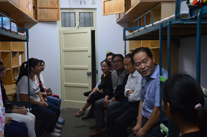 在学生寝室,学院领导、老师与学生们亲切交谈,详细询问新生所来地方及到校后的感受。段建章书记欢迎新生来到河南师大,并表示今年河南师大成功跨入省部共建高校行列,学校将为学生提供更好的教学环境及教学条件。李春喜院长为新生家长介绍了学校、学院的基本情况,对新生提出的关于生活、学习、专业等方面的问题给予详细解答,并鼓励大家要适应新环境,找准新定位,确立新目标,创造新成绩,勉励同学们掌握正确高效的学习方法,培养吃苦耐劳的学习精神。同时,马新峰、李景原、李建军等领导老师与新生谈困惑,聊家常,讲事例,拉近了彼此距离,消除了新生陌生感,轻松愉悦的交谈使师生之间其乐融融,并在此过程中增进了新生对学院环境、大学生活的了解。2015级新生申静说:“十分感谢老师们在繁忙之中来看我们,刚到学校时的疏离感已经淡化了,我会尽快适应大学生活,不辜负父母和老师的希望。”